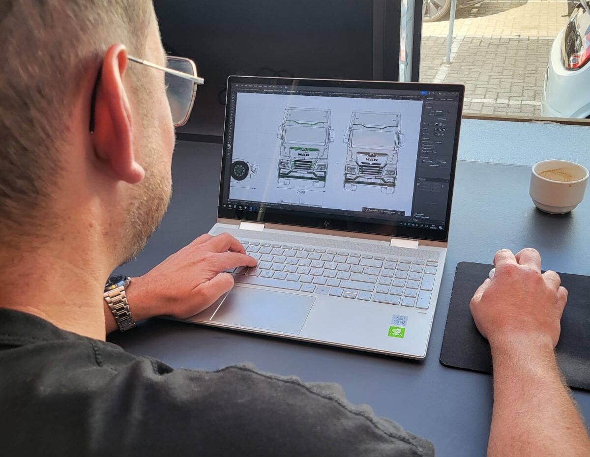 We maken een visueel ontwerp zodat u exact ziet hoe uw vrachtwagen eruit komt te zien.